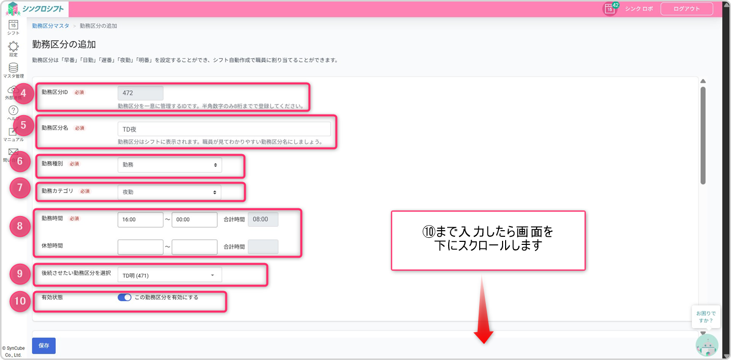 10.有効状態で「この勤務区分を有効にする」をONにします。