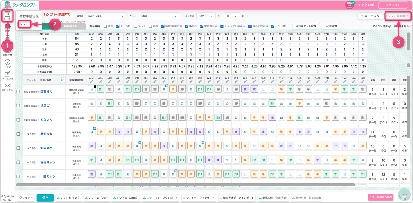 割り当てられた勤務区分の数が2種類以下の職員の場合、正循環配置を守られないことから、自動作成後のシフト表において手修正作業が多く発生する場合があります。