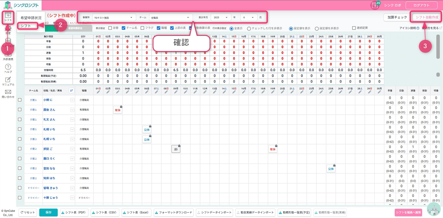 シフト作成完了後、必要に応じて手修正を行ってください。
