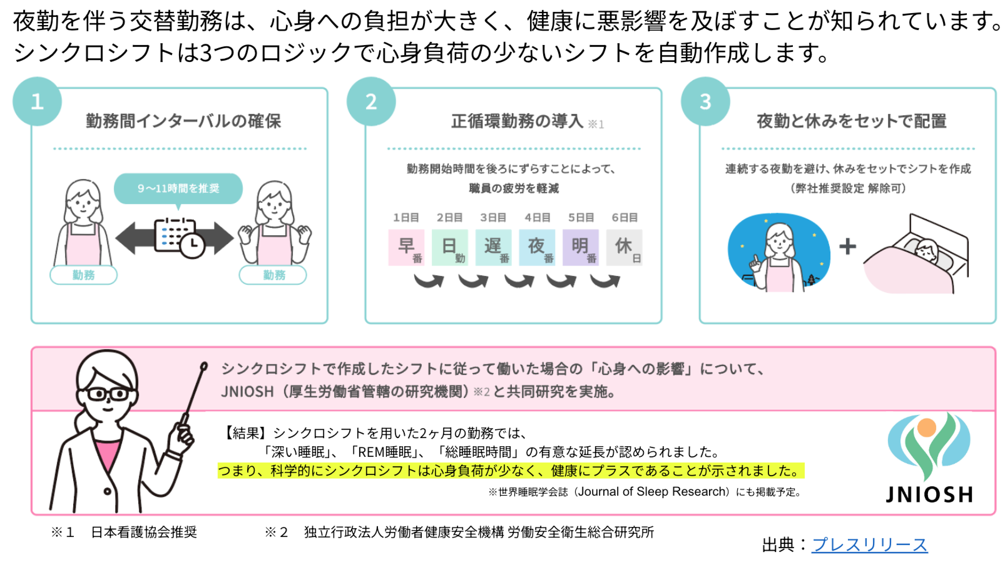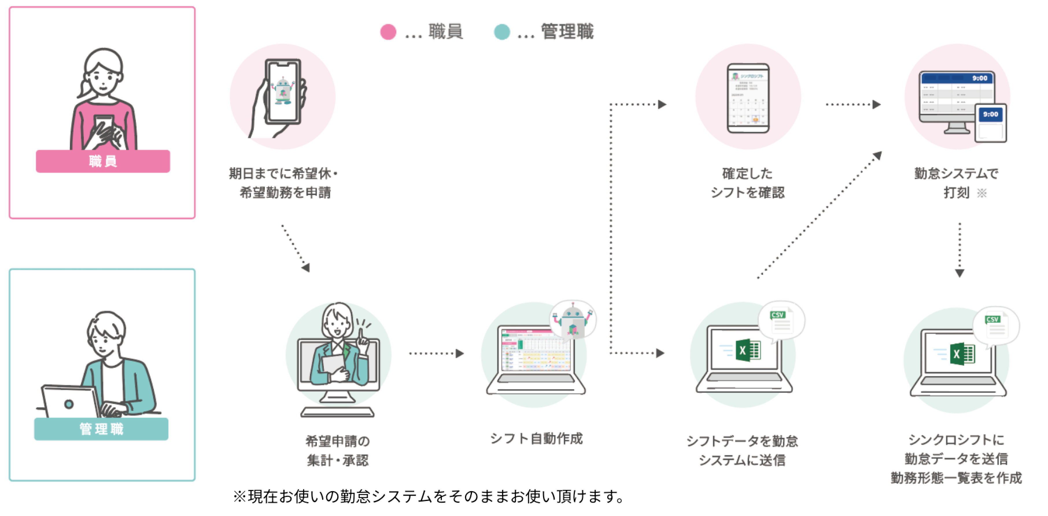 医療・介護・調剤薬局などの現場で働く方々のシフト課題を解決する「シフト管理システム」です。