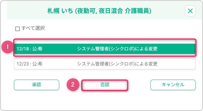 ※シフトを取り消しても職員へ自動通知はされません。