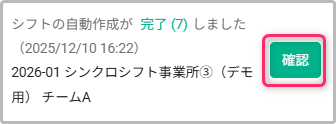 自動作成された結果の「確認」アイコンをクリックすると該当のシフト表を表示できます。