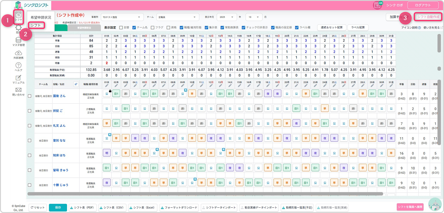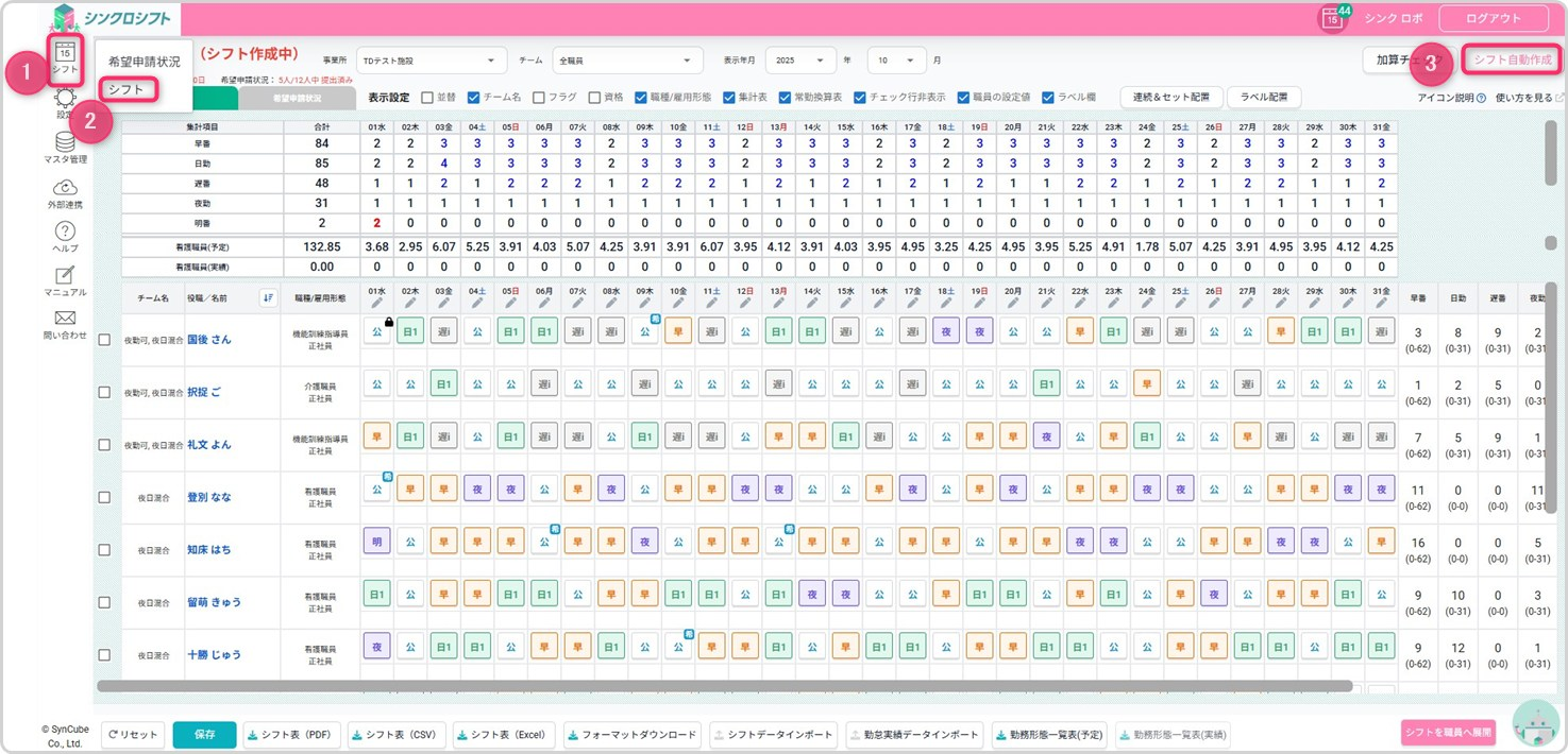 以上の手順で、3交替制の設定が完了しますので自動作成を行なってください。