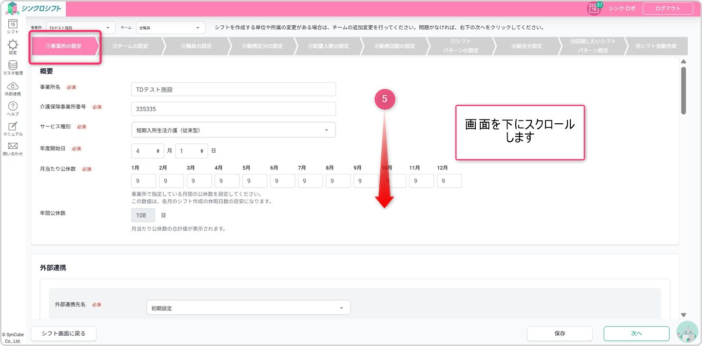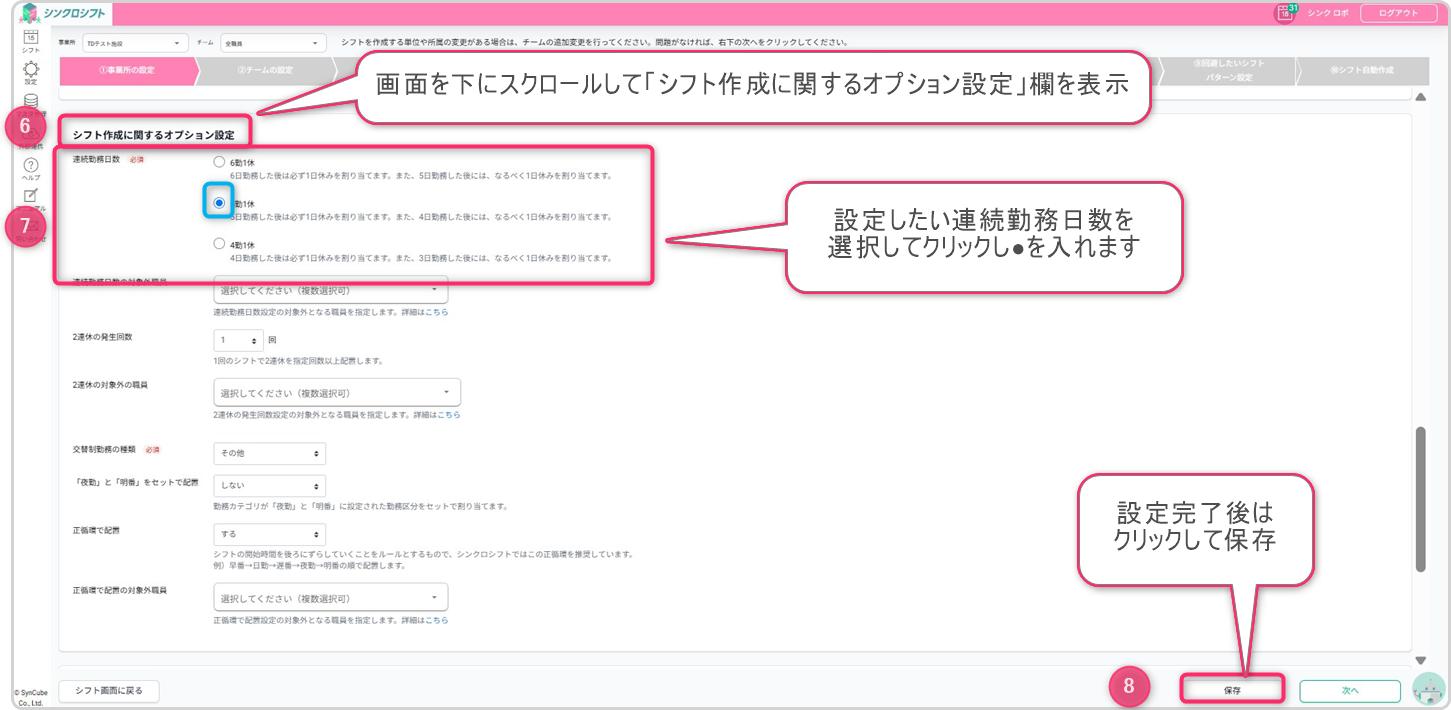 シンクロシフトでは、この連続勤務日数の設定を変更できます。