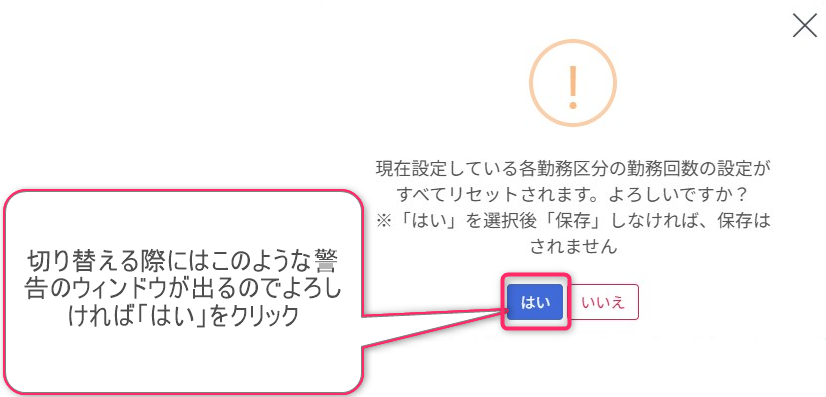 ※2025年1月30日以前にシンクロシフトのご利用をされている事業所ではデフォルトが「こだわりモード」となっています。必要に応じてお切り替えください。