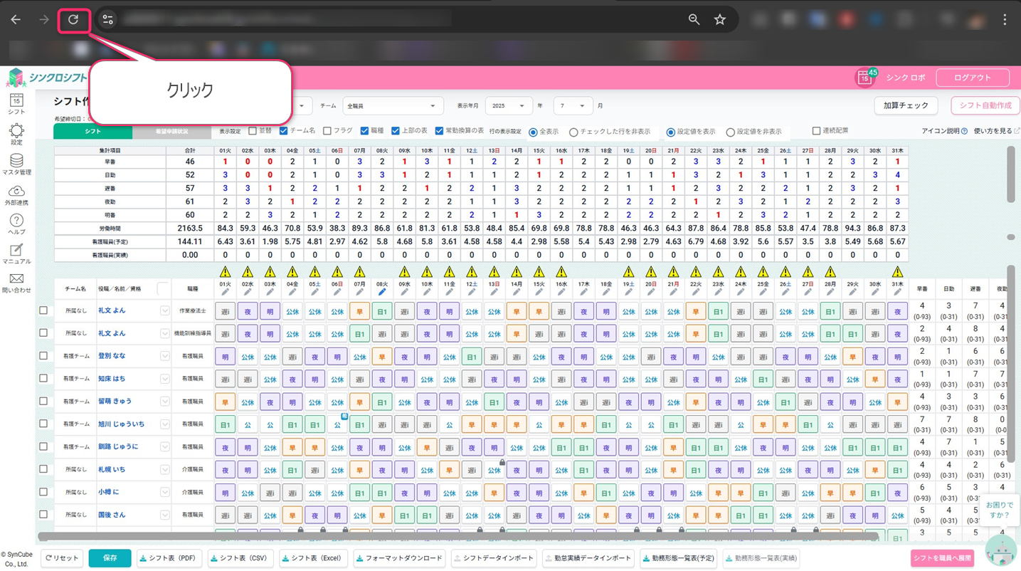 画面の更新はキーボードの「F5」キーを押していただくか、ブラウザ上の更新ボタン(丸い矢印)アイコンをクリックすることで画面を更新できます。