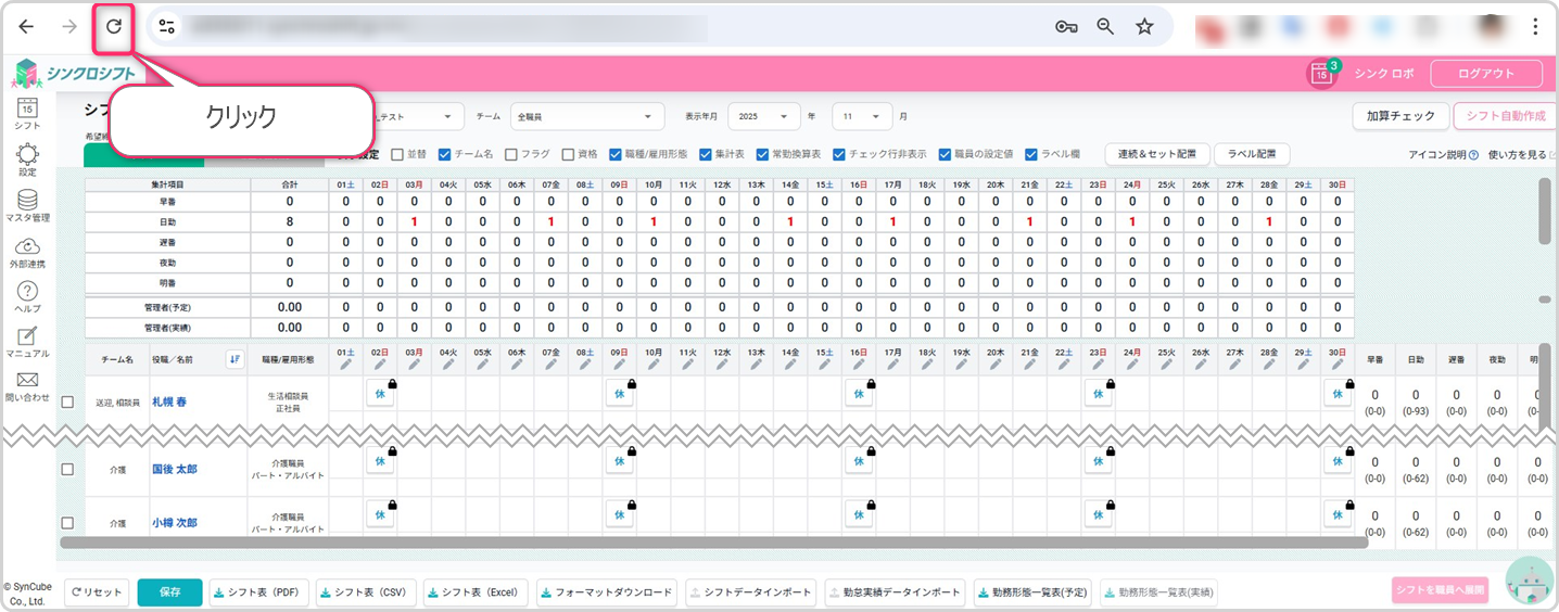 画面左上の更新ボタンをクリックし画面を更新してください。
