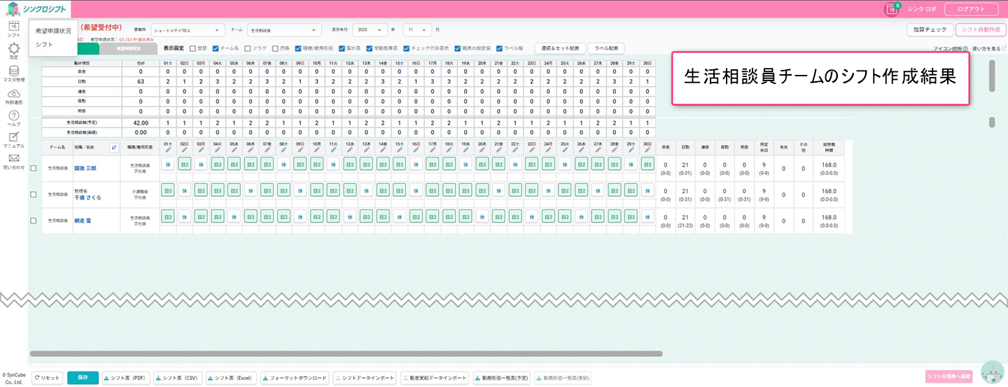 (1)生活相談員チームのシフト作成(ロックしないでシフト作成)