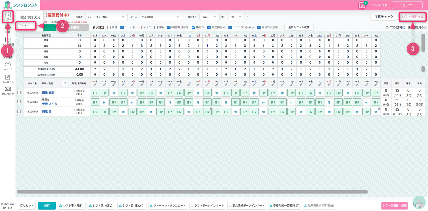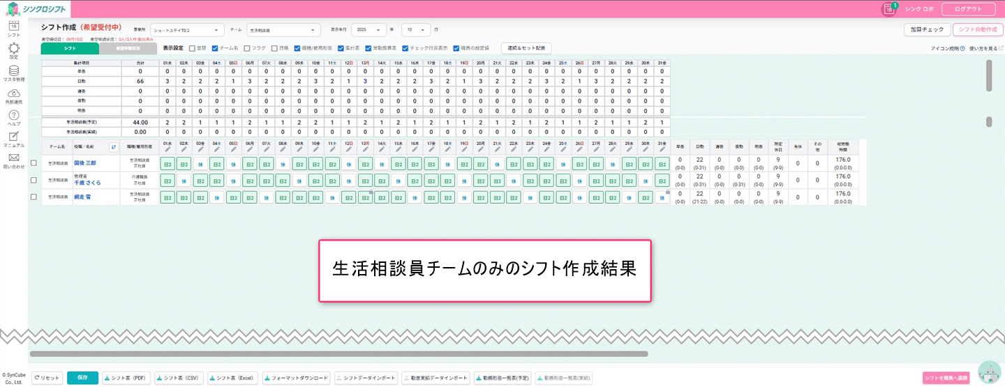 (1)生活相談員チームのシフト作成(ロックしないでシフト作成)