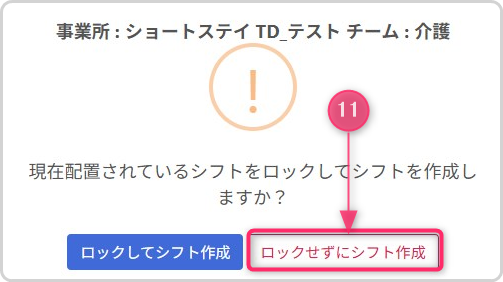 ※再度作成する際は「ロックせずにシフト作成」を選択します。