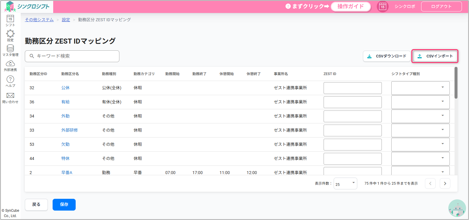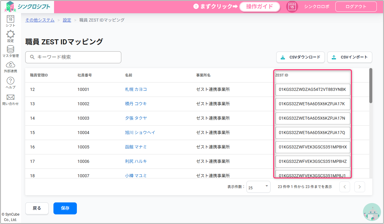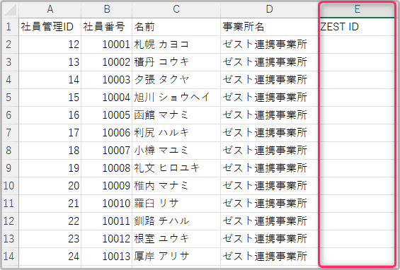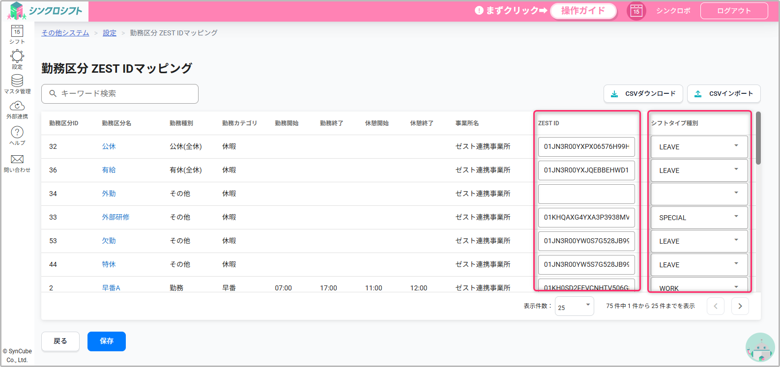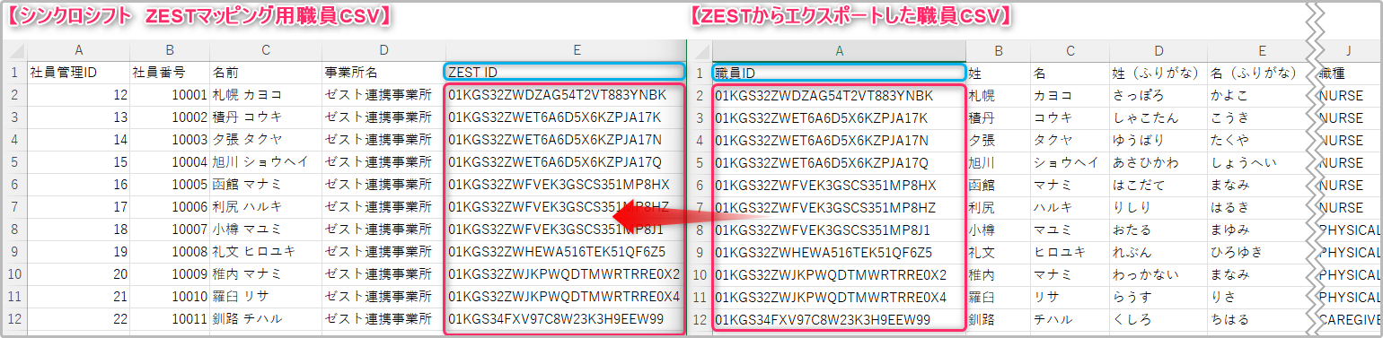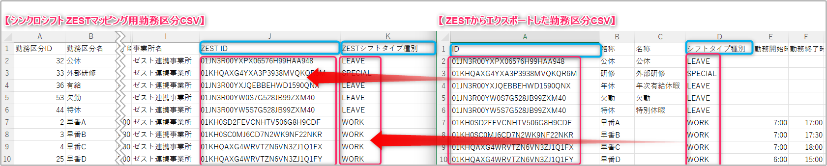 シンクロシフトZESTマッピング用勤務区分CSVファイル J列[ZEST ID]にコピーします。