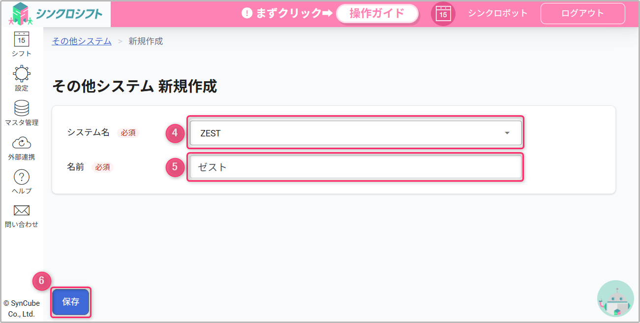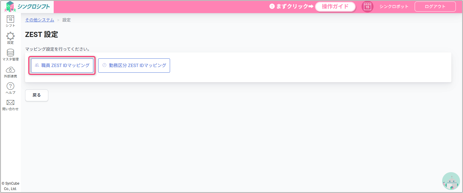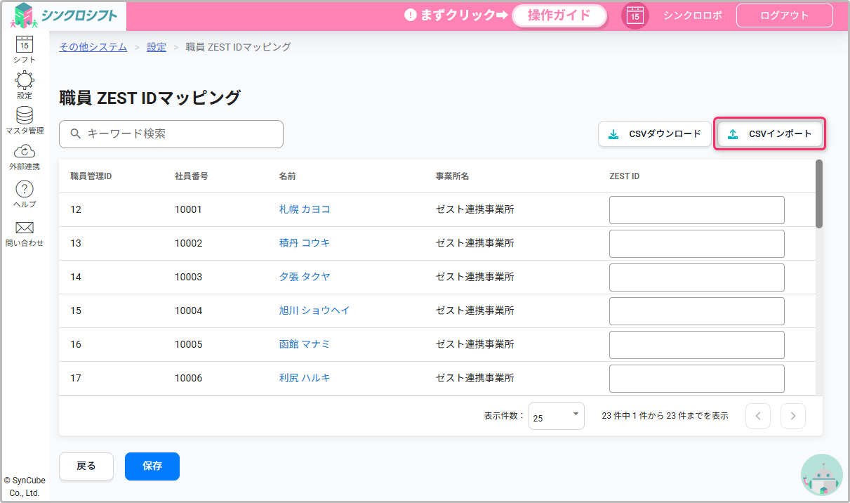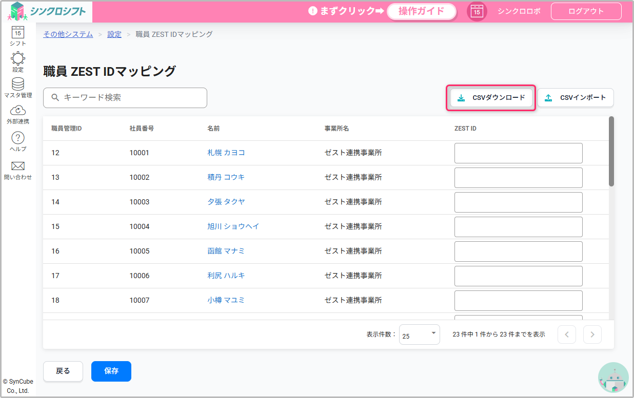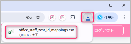 シンクロシフトZESTマッピング用勤務区分CSVファイル J列[ZEST ID]にコピーします。