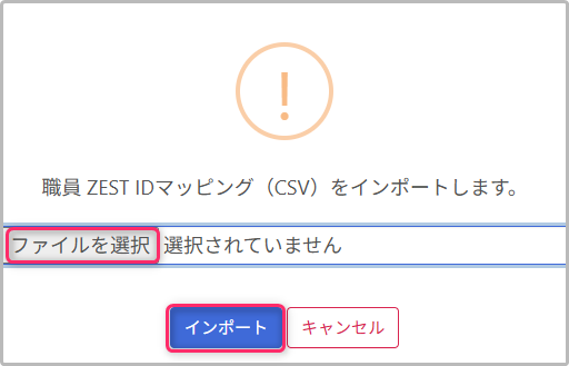 「ファイル選択」ボタンをクリックし、先ほど更新したファイルを選択します。